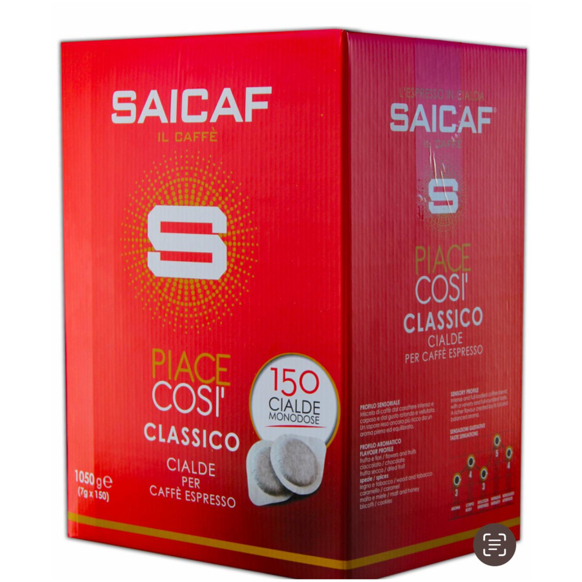 Espresso in cialde universali da 7 grammi in astuccio da 50. Per un espresso davvero intenso e cremoso.