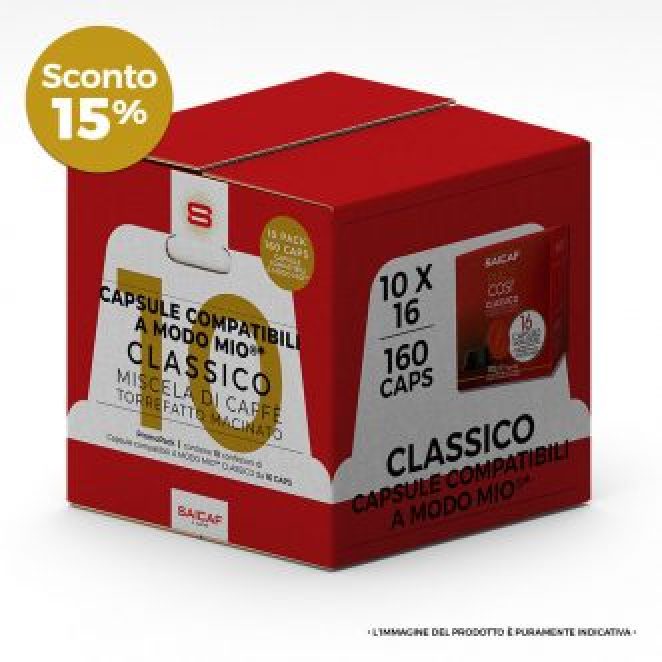 Capsula da 5 grammi compatibile con il sistema Nespresso®* ma che regala il gusto inconfondibile del Classico Saicaf in astuccio da 30 capsule.