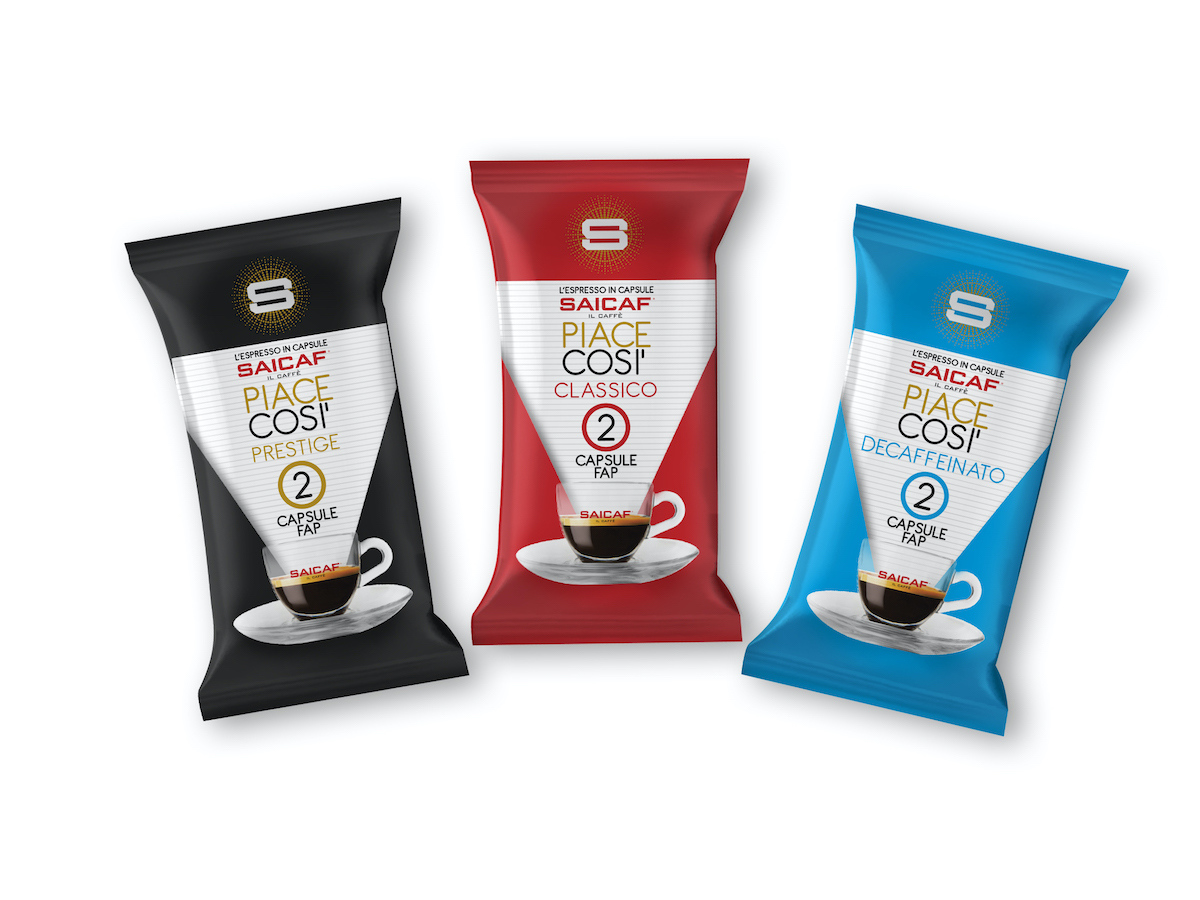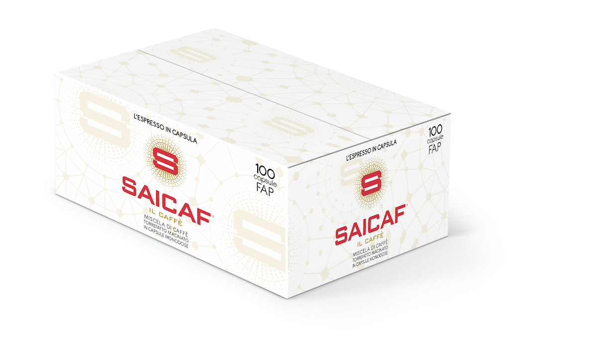 Capsula da 7 grammi compatibile con il sistema FAP di Lavazza* nella pratica confezione da 100 capsule monouso e tutto il gusto di Saicaf.