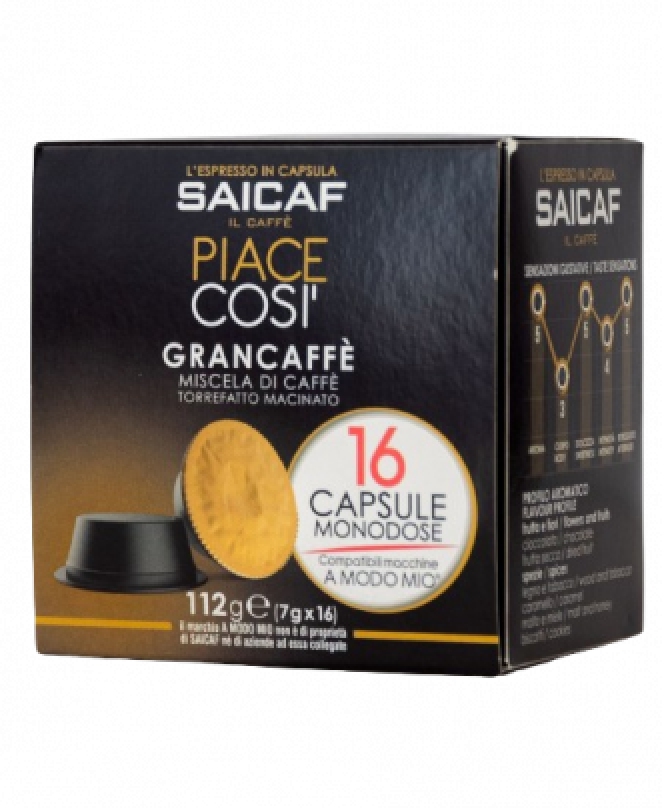 Capsula da 5 grammi compatibile con il sistema Nespresso®* ma che regala il gusto inconfondibile del Classico Saicaf in astuccio da 30 capsule.